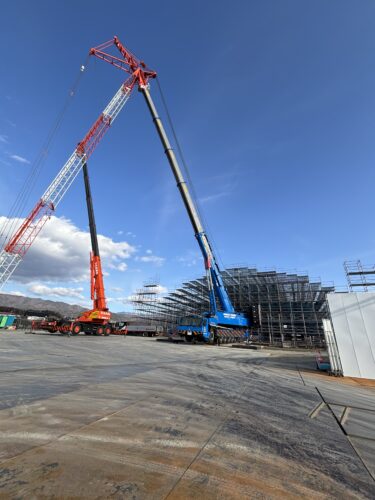 美原防災スポーツセンター(仮称) 2026.02.17 現在施工中の美原防災スポーツセンター(仮称)では 地上から約15mの足場が立っています ここからまだ2mほど足場を立てるそうです 完成が待ち遠しいですね!